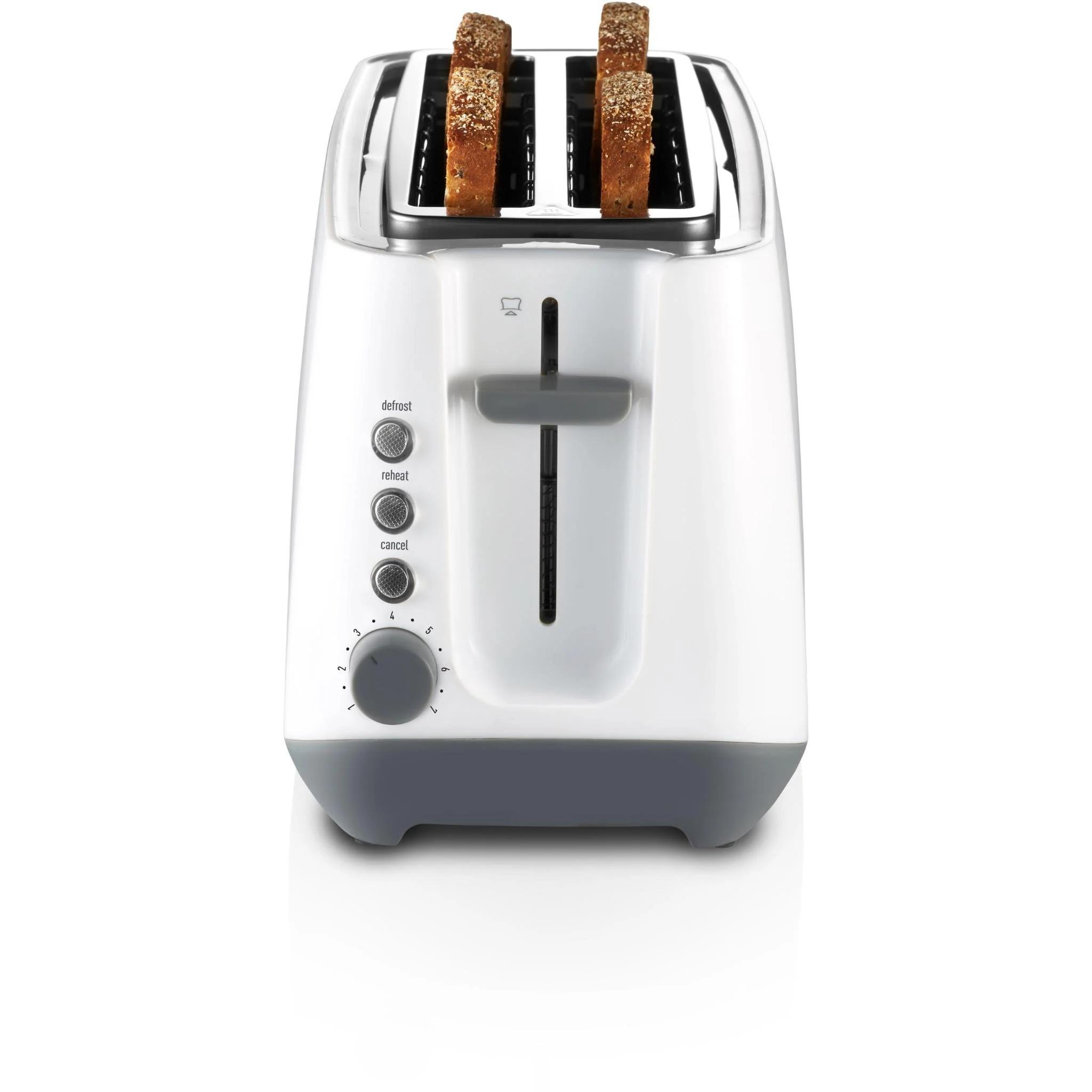 2 Slice Toaster (White) Capacity: 2 standard sized slices, crumpets and muffins Colour: White finish Settings: Choice of 7 browning functions