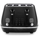 4 Slice Toaster (Black) Capacity: 4 toasting chambers Colour: Sophisticated matt metallic finish with chromed details Settings: Reheat, defrost, cancel and bagel functions
