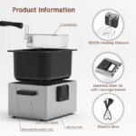 1800W 5 Liters/21 Cups Large Electric Deep Fryer with 3 Frying Baskets for Home Use, Adjustable Temperature,View Window Lid,Countertop Stainless Steel Body Deep Fryer Pot,Perfect for Kitchen, Fry Fish