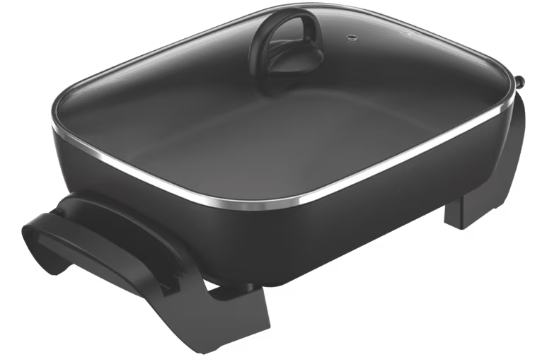 Banquet Electric Frypan features an innovative diamond-infused, two layer non-stick coating for superior durability and easy food release when cooking with sticky sauces. The 310mm width and 210mm height offers ample cooking space while the glass lid.