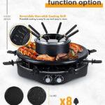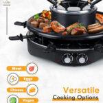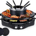 Electric Table Grill – Indoor Non-stick Electric Round Grill Griddle – Reversible 3-in-1 Raclette Grill & Fondue Set for 8-Person, Flat Plate, Pancake Pan Included, Temperature Control