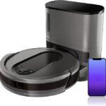 Robot Vacuum with Self-Empty Base, Bagless, Row-by-Row Cleaning, Perfect for Pet Hair, Compatible with Alexa, Wi-Fi, Gray.